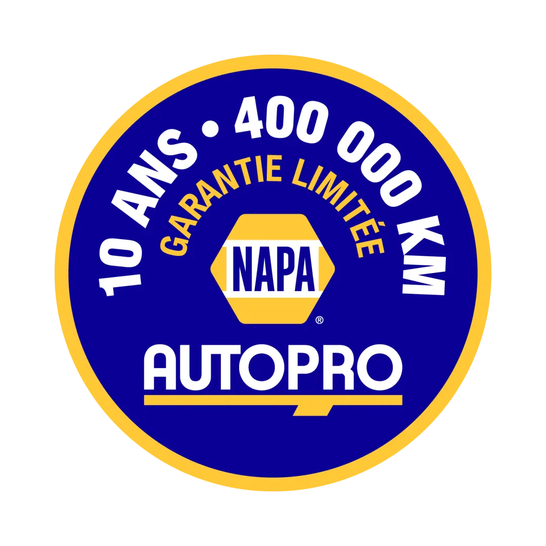 Garantie limitée NAPA AUTOPRO de 10 ans ou 400 000 km sur le moteur et la transmission